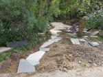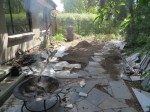 After that, I started tearing up the old ground, which I then sifted shovel by shovel into one pile of dirt and one pile of rocks. The dirt was then mixed with cement to make the foundation for the granite pavers. The fun part with the paving was making the right patten of shapes and colors, so that everything fit together but was not too predictable.