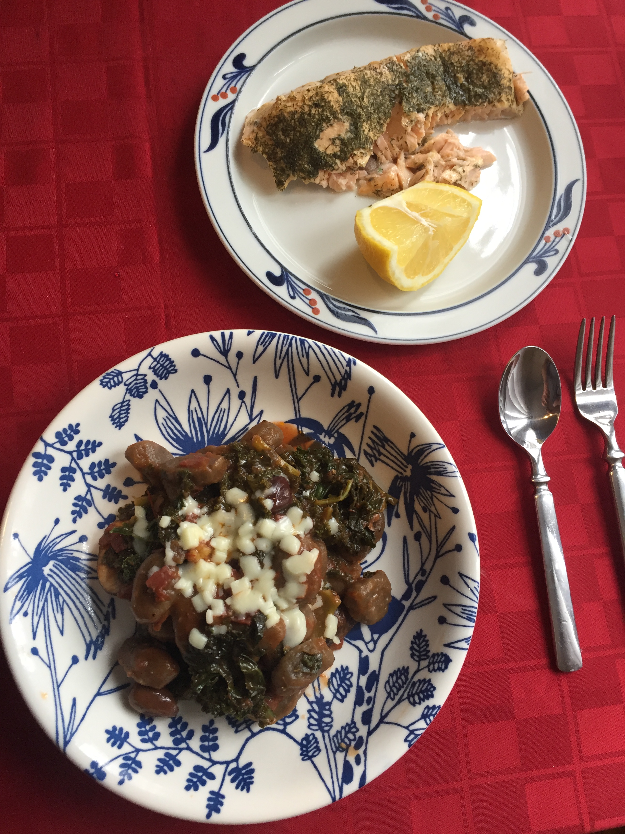 Gnocchi with kale, mushroom and salami (thanks, ALDI!)