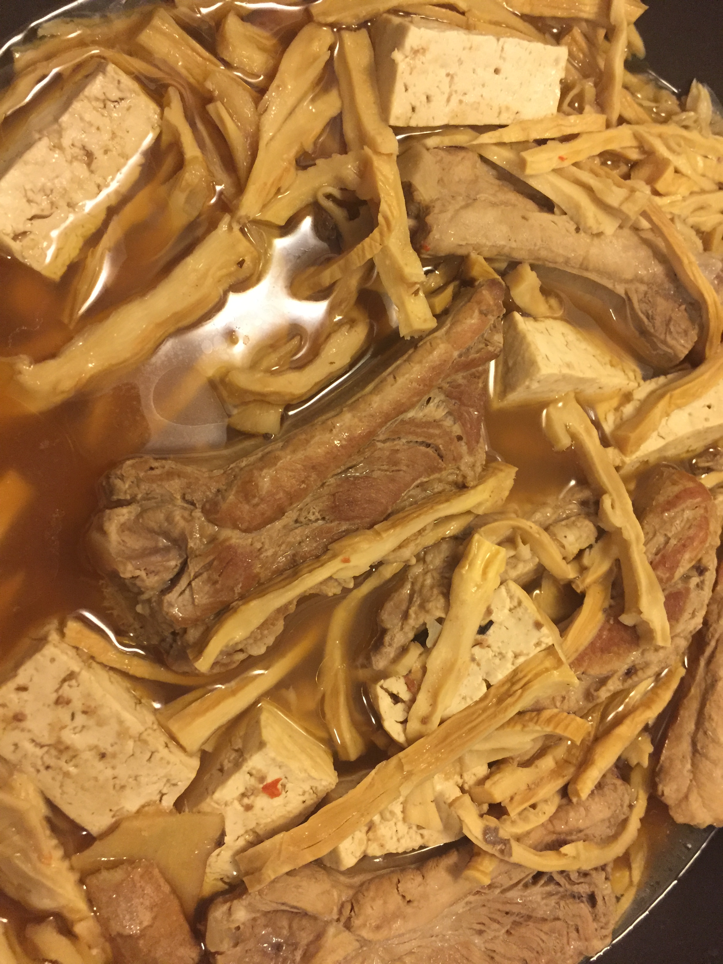 Bamboo soup with pork ribs and rice cakes