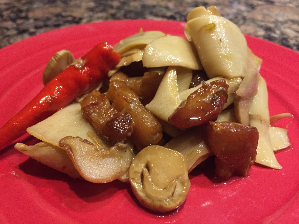 Sour bamboo shoots and crispy pork belly