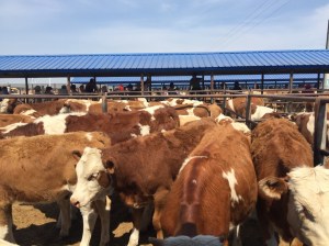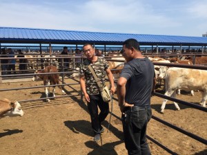 So who are these people, and what are they doing? Overwhelmingly, they’re feeders, which means that they buy grazed cattle and fatten them up for slaughter. This process takes anywhere from six months to a year, but can add thousands of yuan to the price of the animal. Some people do this as a sideline–you’ll see a few head of cattle in the back gardens of village houses. Others do it on a larger scale. My friends in the pictures have about 200 head of cattle each, and make most of their profit margin at this stage. Other buyers were coming in from all over northern China.