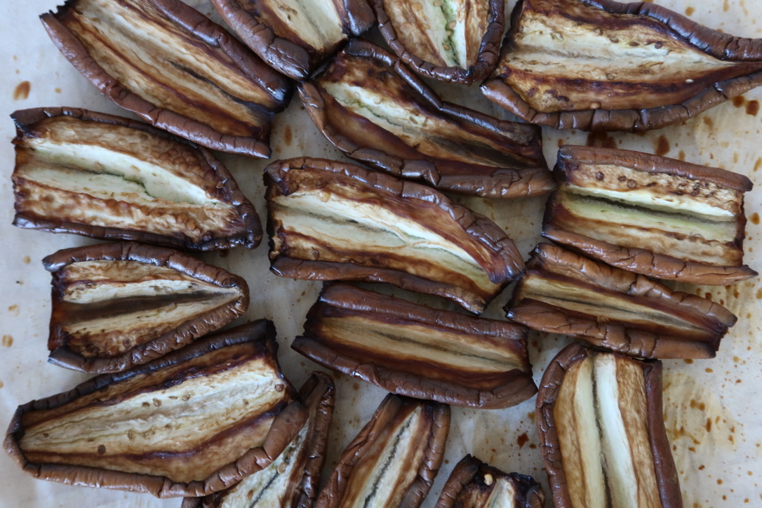 Each one was nice in its own way. Both were pleasantly chewy, though I’d consider peeling the larger cut eggplant when I try this again. The thin cut had a really luxurious texture, and held the taste of its marinade well. I’d want to try that one as a focal ingredient–just that with some light greens in a vegetable or chicken broth.
