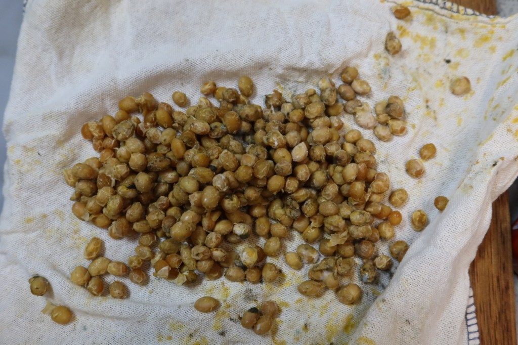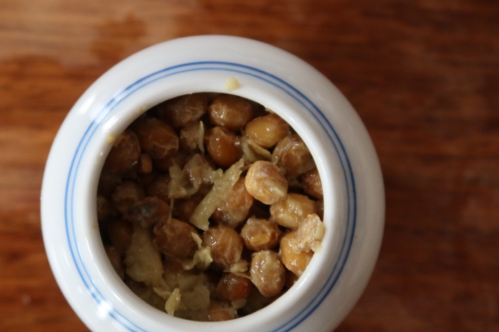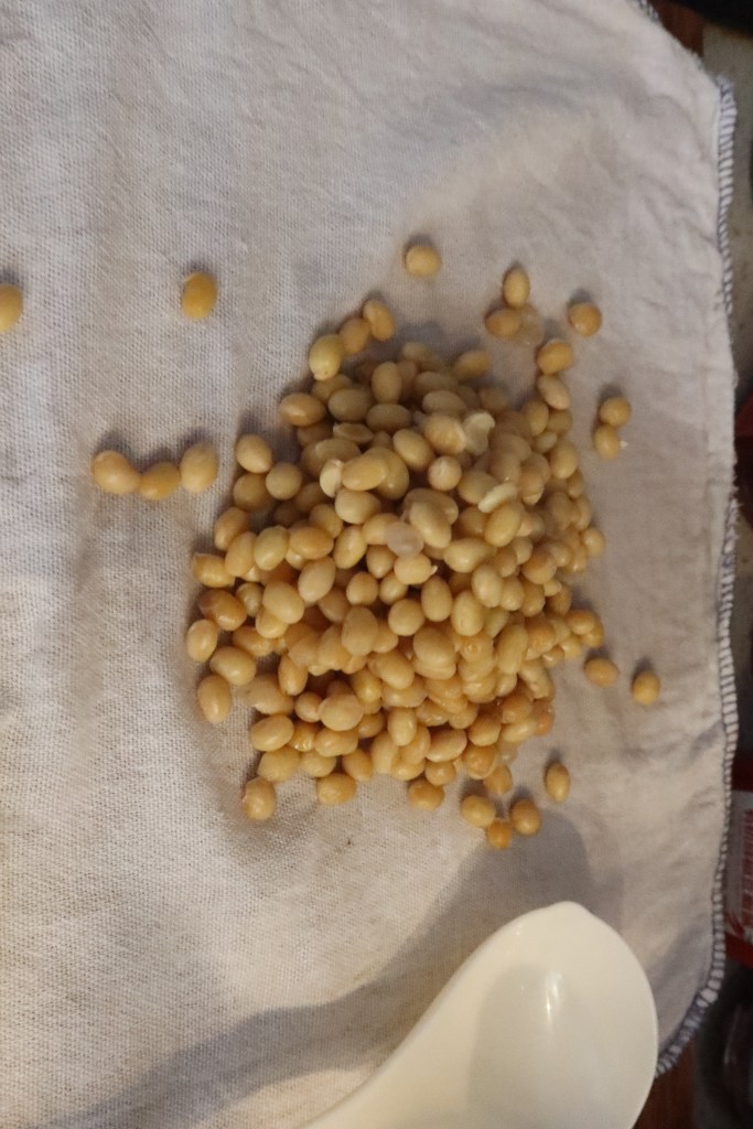 So which one is this? Well, we have no starter, but we do know it’s aged in an oxygenated environment. The threads sound like natto, which is made covered. We don’t know what kind of grass is used to cover the beans, so I doubt that’s meant to be the source of the mold. So nope, I have no idea what’s going on here. Let’s just try it and see what happens.