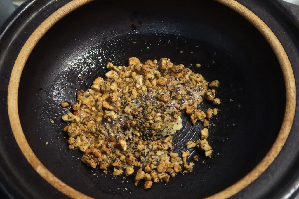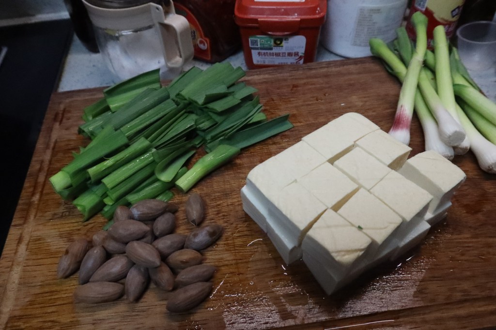Again, just amazing. The intensely-flavored oil gets absorbed into the rice flour coating (more than the tofu), which then flavors the sauce. The xiangfeizi add a nice richness and a very pleasant crunch. You could substitute finely crushed almonds or peanuts–just a small handful of either one. If you are not a Song dynasty stickler, feel free to use soy sauce in place of bean paste.