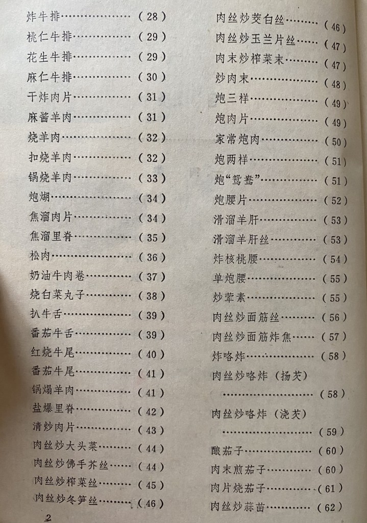 1984’s Halal Foods of Beijing 北京清真菜谱 is one of those books. It comes from Beijing’s Youyishun 又一顺 Restaurant, and specifically from head chef Yang Yonghe 杨永和. Yang inherited Beijing’s distinct tradition of Muslim cuisine, but also mixed it with Western techniques and dishes. The book is directed to restaurant cooks. There’s no talk of cooking for the family. This is all from one professional to another.