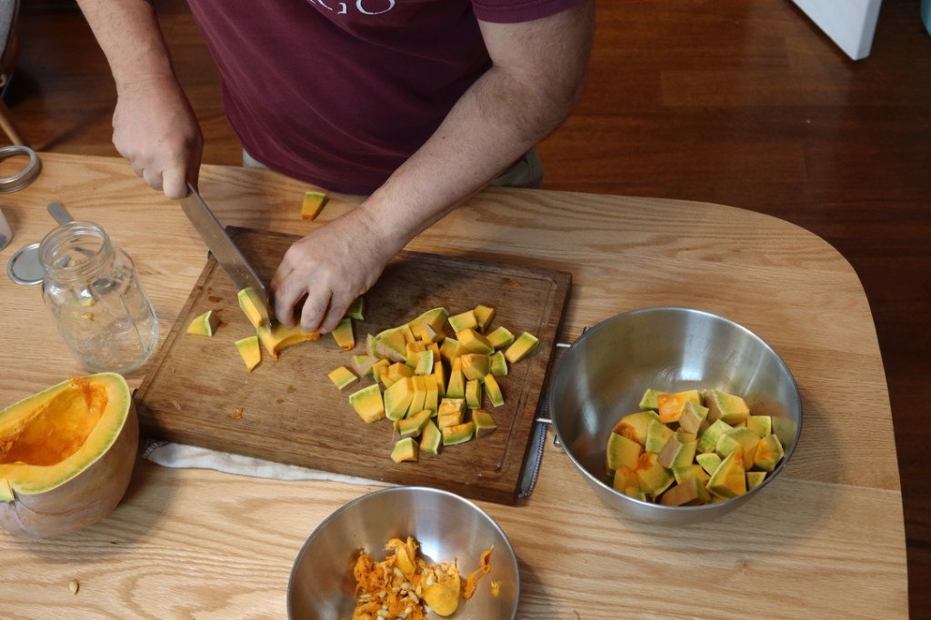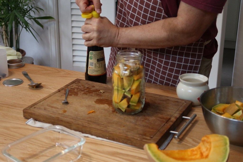 I’ll let both batches sit for a couple of weeks, and then decide what to do next. If the pumpkin comes out relatively firm, I will try sun drying it to concentrate its flavor. If it comes out soft, I might try making it into a sauce that can be used directly as a topping for noodles. In any case, I certainly know what not to do.