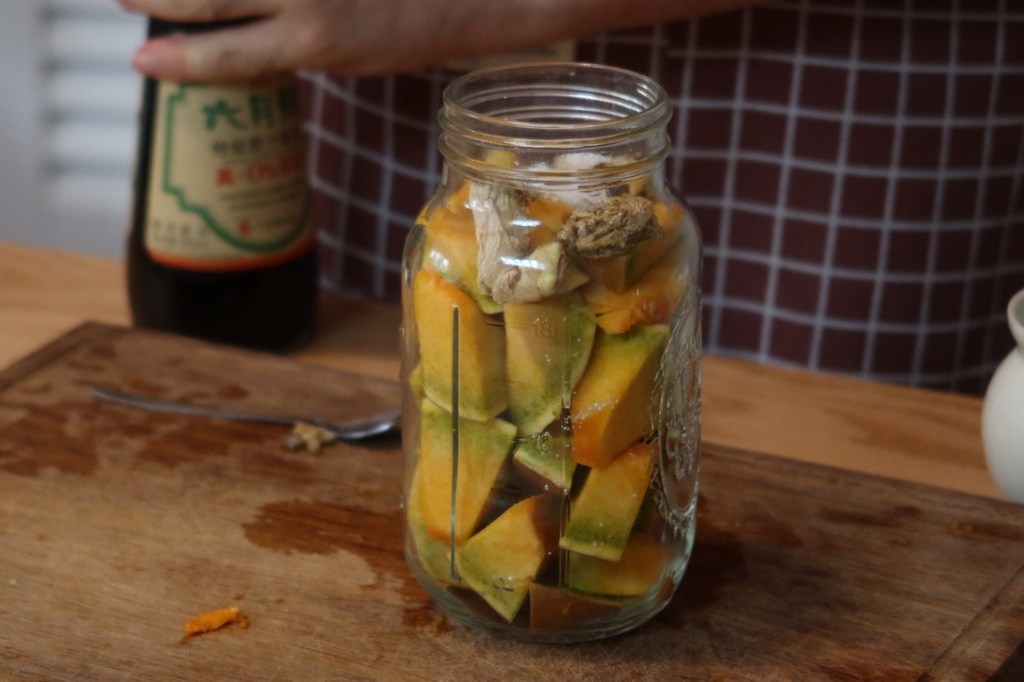 The original 19th-century recipe called for filling a hollowed-out pumpkin with soy sauce and letting it cure for six months. We were promised an exquisite result, but instead got a bizarre-looking table centerpiece that quickly started to rot.