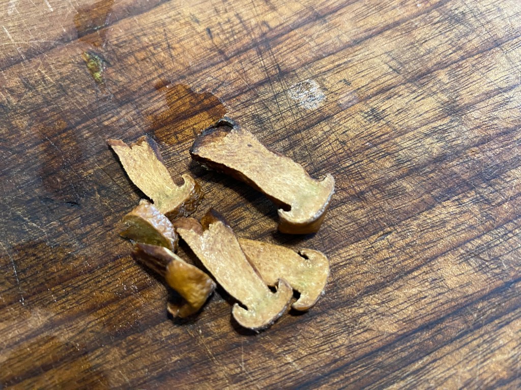 I had originally thought that these might end up tasting like dried soy sauce and nothing else. Instead, the cured squash had saltiness, sweetness, and the vegetal flavor of the squash itself each arriving in discernible waves. The taste actually did resemble dry-cured ham, maybe a piece that had gotten a bit dried out.