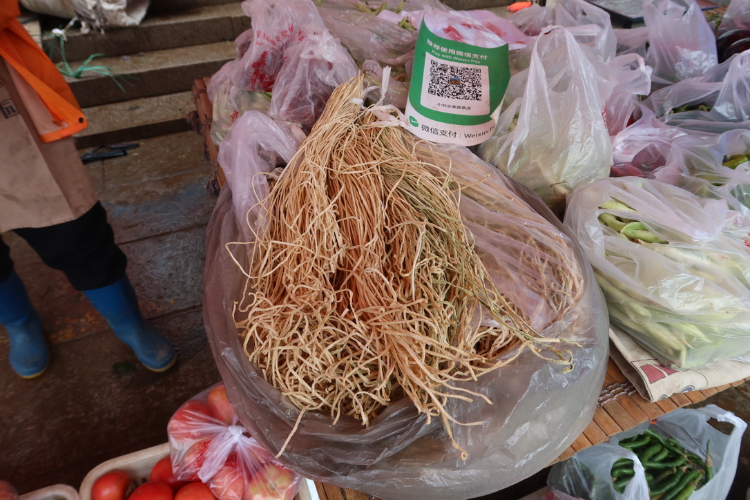 Chinese cuisine makes wonderful use of all manner of dried foods. Besides the usual mushrooms and chilies, my kitchen contains a stock of dried bamboo, various dried seaweeds, and dried eggplant. Some salted, some not, all extremely umami rich. (And we haven’t even mentioned the wonderful alchemy of dried seafood)